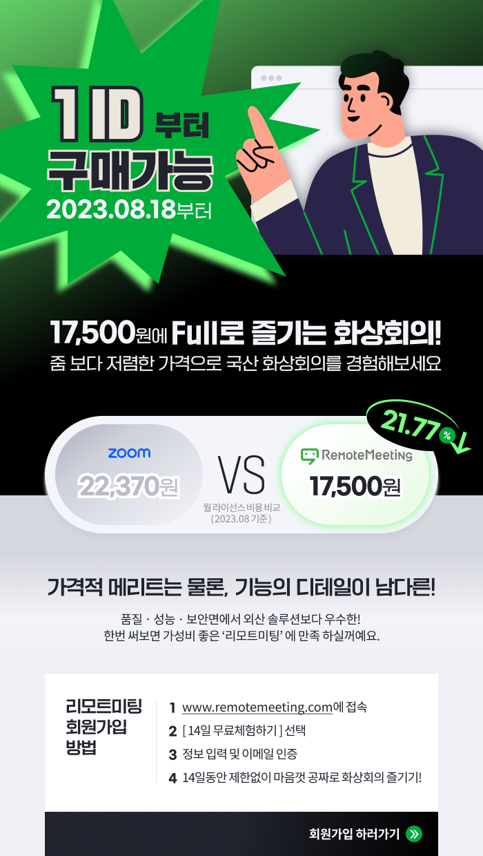 줌 보다 저렴한 리모트미팅의 모든 기능을