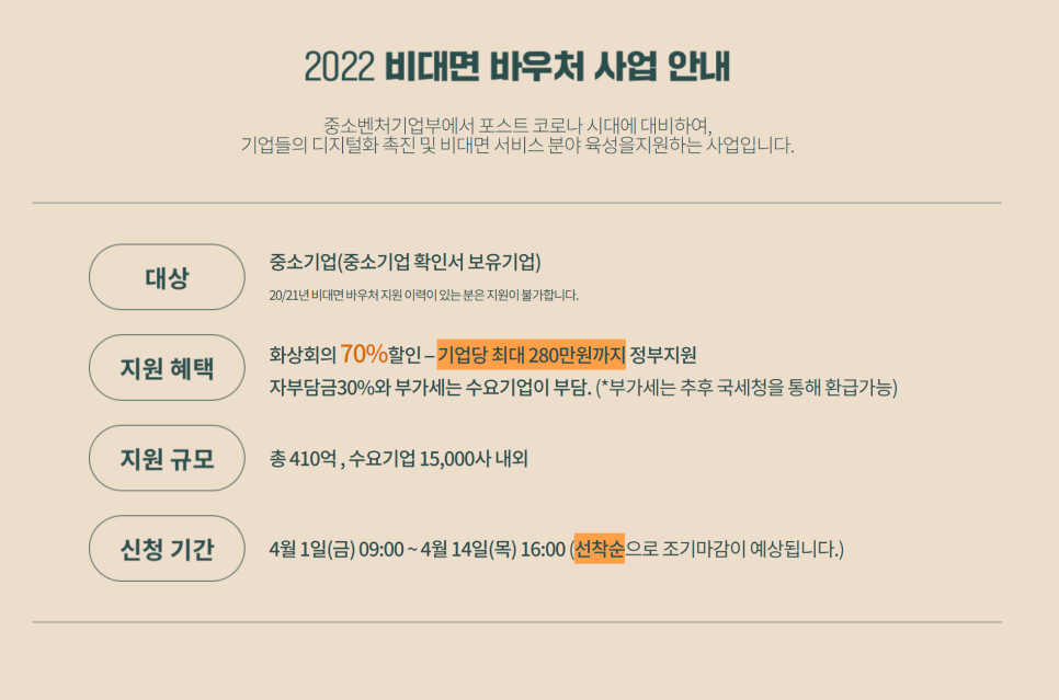 이 사업은 기업에서 비대면 서비스를 사용할 때 , 일정 금액을 지원해주는 사업입니다.