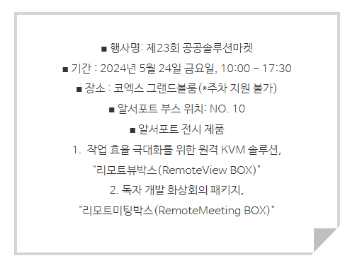 '2024 공공솔루션마켓' 전시에 알서포트가 참가합니다.👏