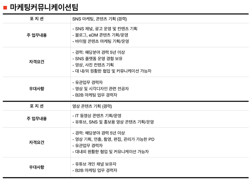 아래 채용공고 한번 체크해 주시고 많은 지원 부탁드립니다 :)
