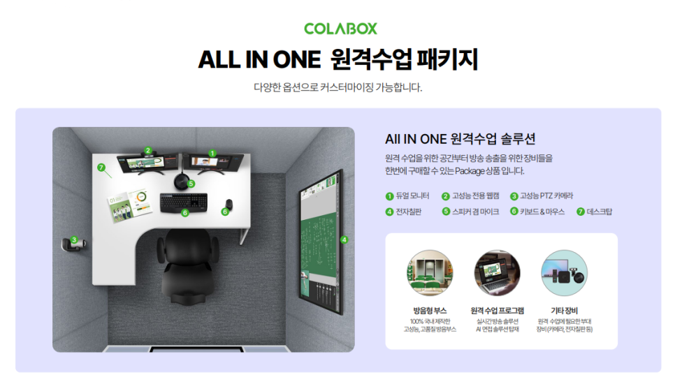 알서포트의 콜라박스에서는 모든 환경을 한번에 조성할 수 있도록 All-In-One "AI면접부스 통합 구매 패키지"를 판매하고 있습니다.