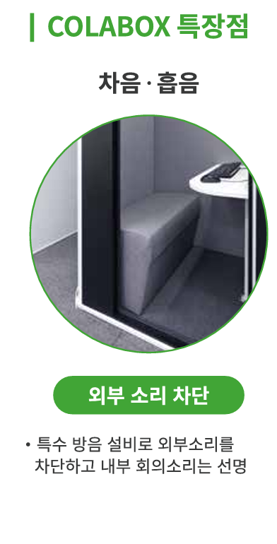 COLABOX는 강화 및 복층 유리로 특수 방음처리를 완료해 두었기 때문에