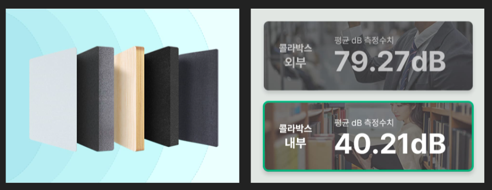 연구소가 고안한 특수 5중 방음 구조이며 EGI 강판, 흡음재, 합판, 스펀지, 패브릭의 형태로 되어 있습니다.