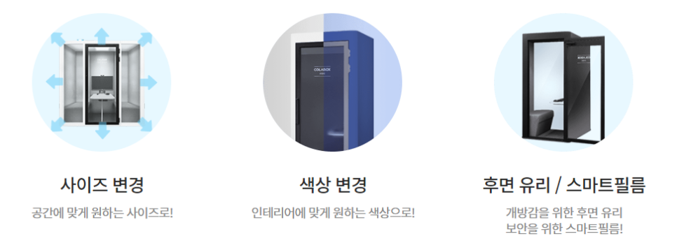 또한, 방음부스 COLABOX의 경우 공간과 용도에 맞게