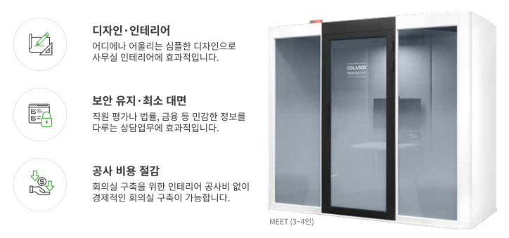 실제 회의실을 구축하는 것보다 작은 공간을 활용하여 회의실을 구축할 수 있는데요..
