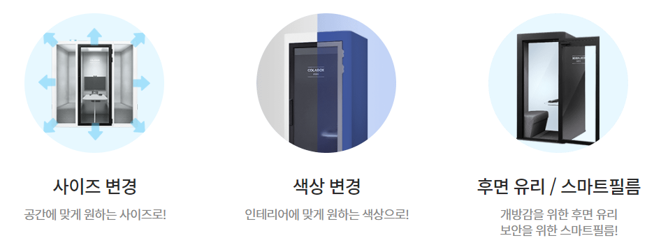 | 혼자만의 공간이 필요할 때, 조립식 방음부스 ‘COLABOX(1인부스, 폰부스,회의부스) (1) | 2024.12.06 |