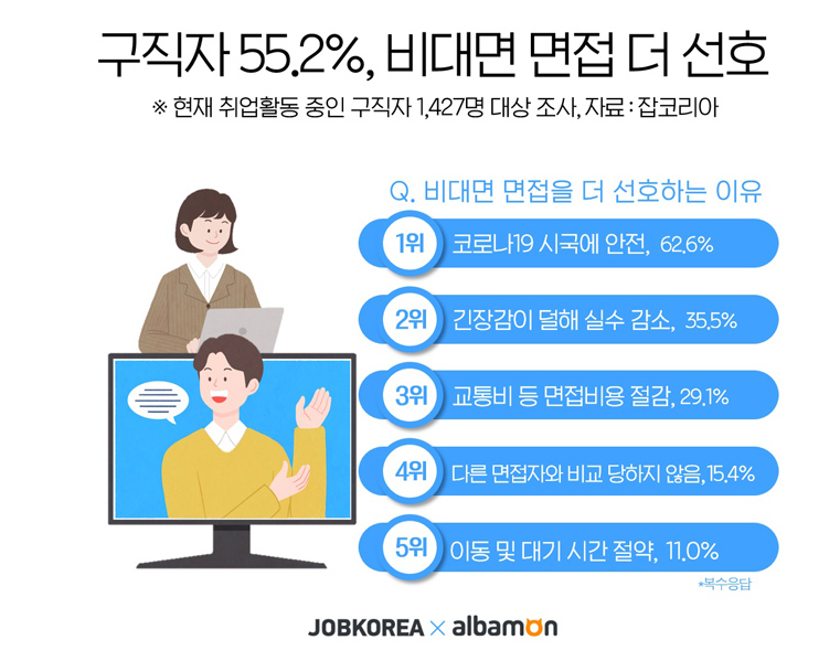 55.2%가 비대면 면접을 더 선호한다고 응답했습니다.