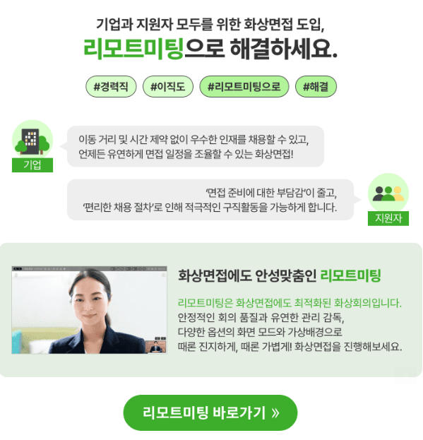 잡코리아에서는 화상회의'리모트미팅'과 서비스를 연동해