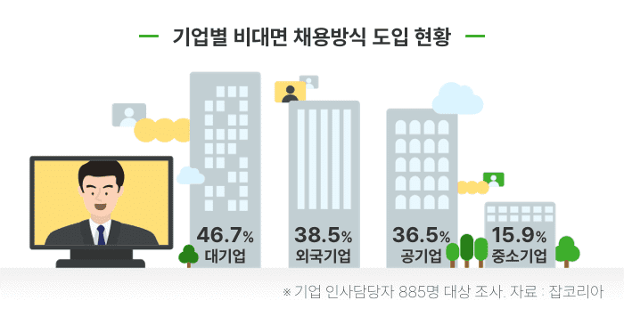 대기업 10곳 중 5곳은 인공지능(AI), 화상 면접 등 비대면 전형을 운영하고 있는데요.