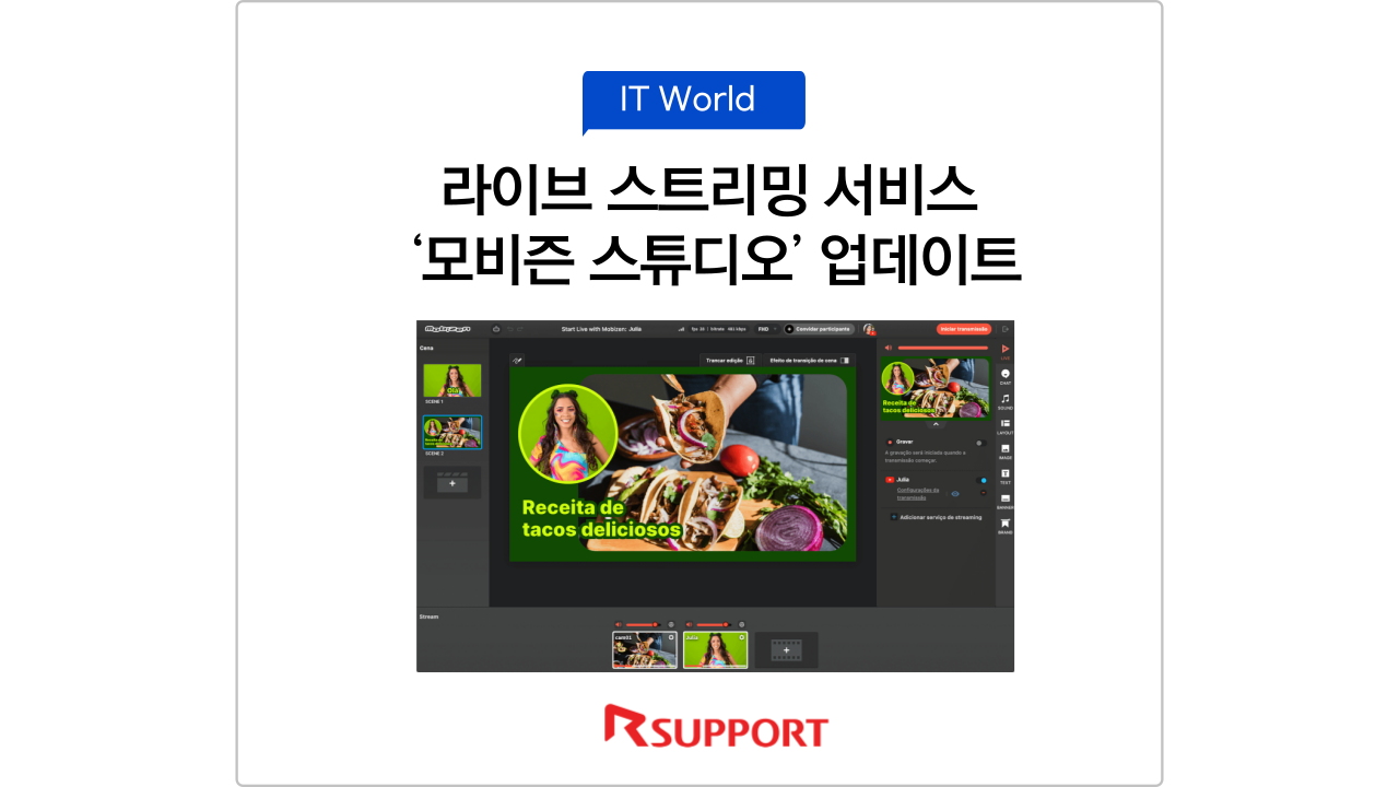 알서포트는 ‘모비즌 스튜디오’의 서비스 지원 언어에 스페이언와 포르투갈어를 추가했다. 최근 브라질, 멕시코 등을 중심으로 남미 지역의 1인 방송 및 콘텐츠 크리에이터가 지속적으로 증가함에 따라 ‘모비즌 스튜디오’의 글로벌 서비스 확대를 본격화한다는 전략이다.