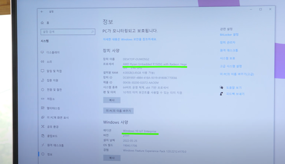 윈도우 10 IoT os가 깔려 있어서 마치