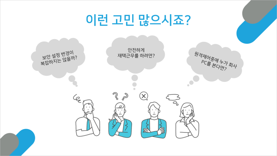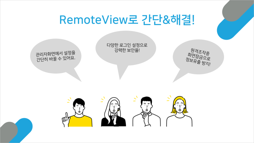 오늘은 여전히 재택/원격근무 시, 많은 관리자분들이 궁금해하여 질문을 주시는 RemoteView의 안전한 보안 설정에 대해 자세히 살펴보도록 할게요!