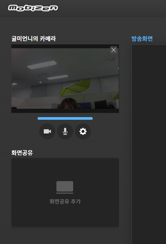 왼쪽 영역에 내 카메라 또는 화면공유를 추가할 수 있어요.