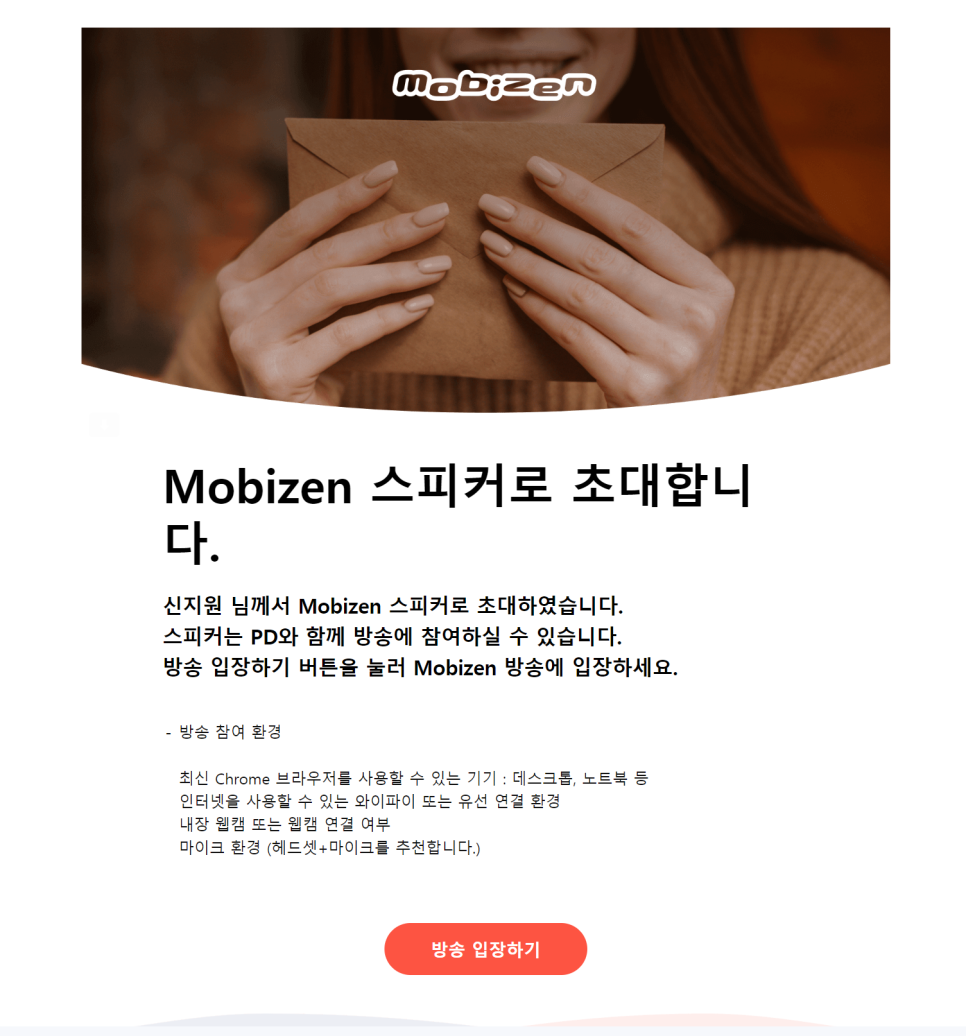 메일에서 방송 입장하기를 클릭해 주세요!