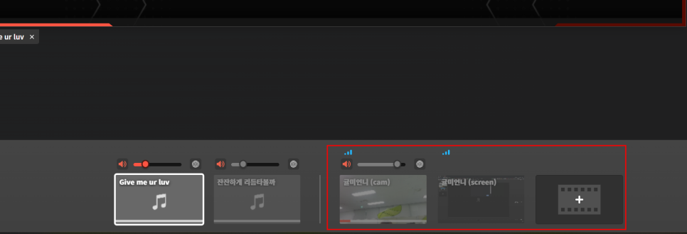 노트북 화면공유 스트림을 추가해 놓았는데요.