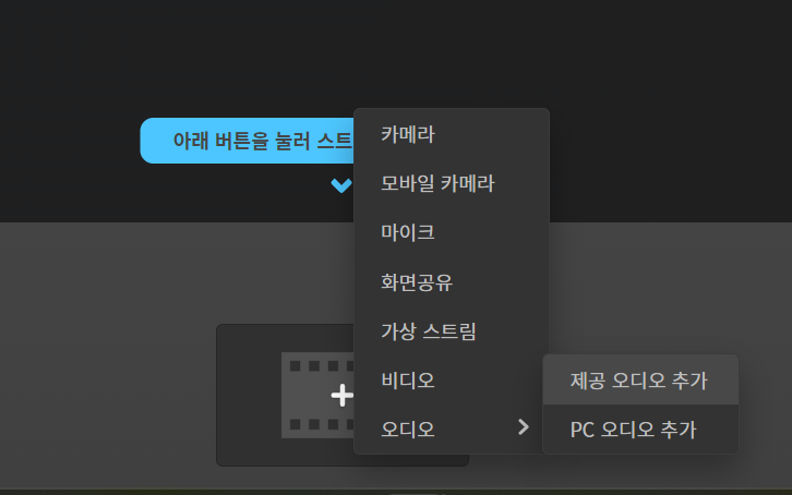 먼저 스트림 영역에서 오디오 메뉴를 눌러주세요.