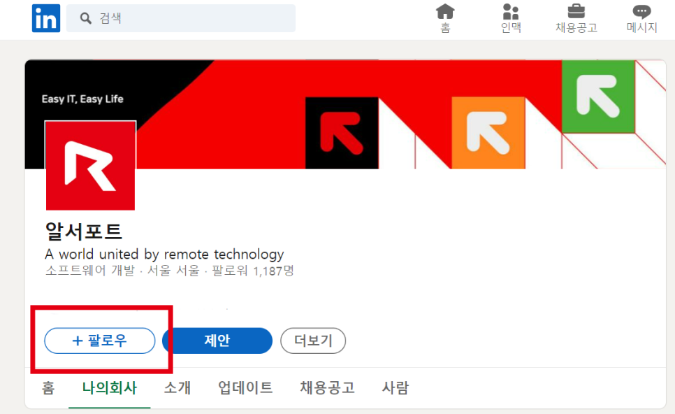 - 알서포트 공식 링크드인 '팔로우' 클릭!