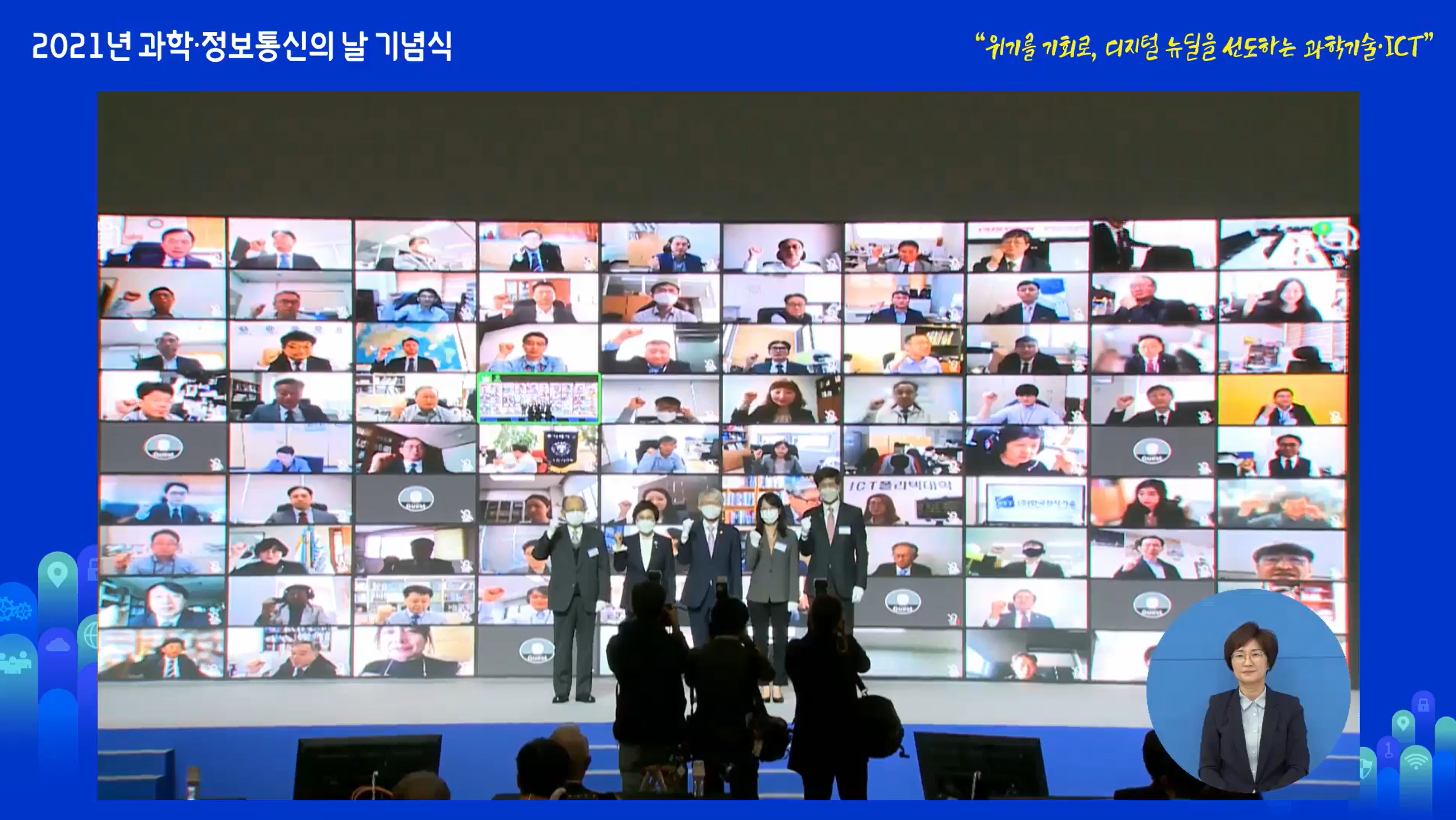 4월 21일 ‘과학의 날’, 그리고 4월 22일 ‘정보통신의 날’을 맞아 개최된 이날 행사 현장에는 행사 주최 및 주관 기관 관계자 일부와 수상자 대표만 참석하고 그 외 관계자들은 모두 리모트미팅으로 함께 하셨습니다.