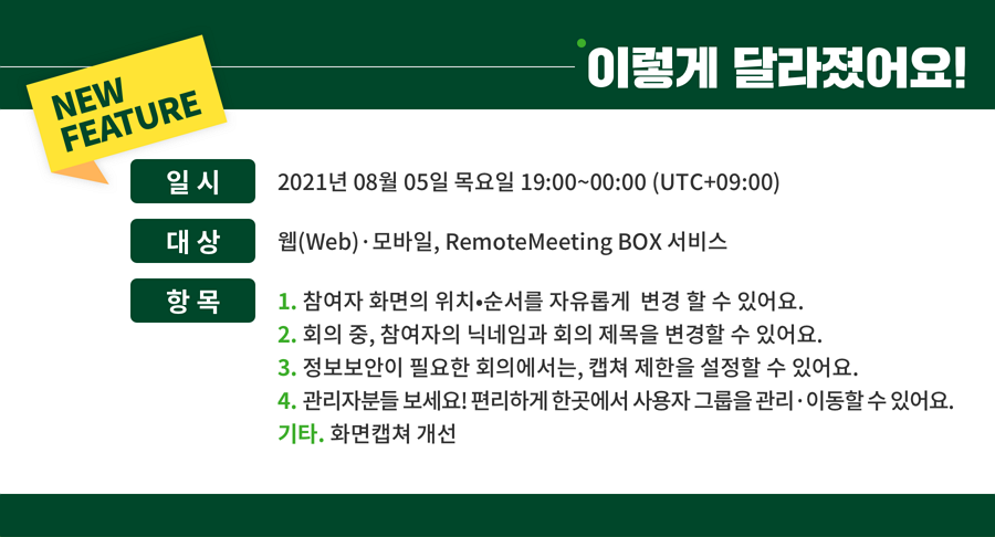 [리모트미팅 업데이트 안내] 새로운 기능들을 지금 만나보세요!(2021.08.05)