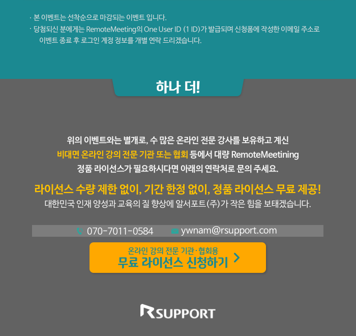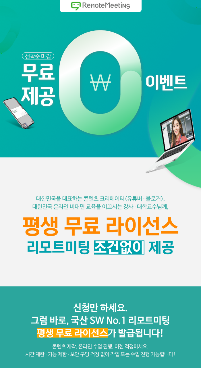 [리모트미팅] 유튜버, 블로거, 교육 관련 종사자 대상 "평생 무료" 라이선스 제공 이벤트!(선착순)