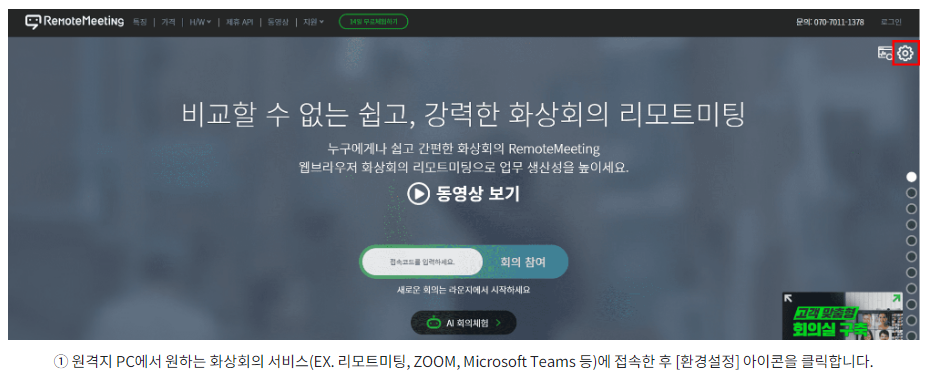 아래는 화상회의 '리모트미팅' 방법입니다.