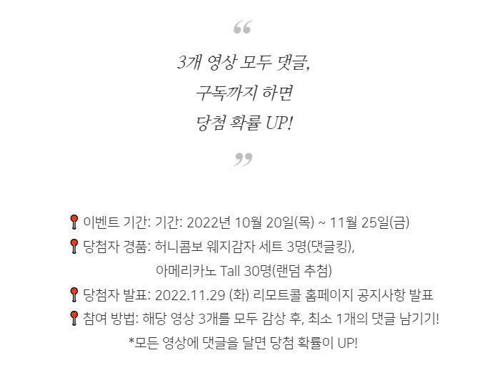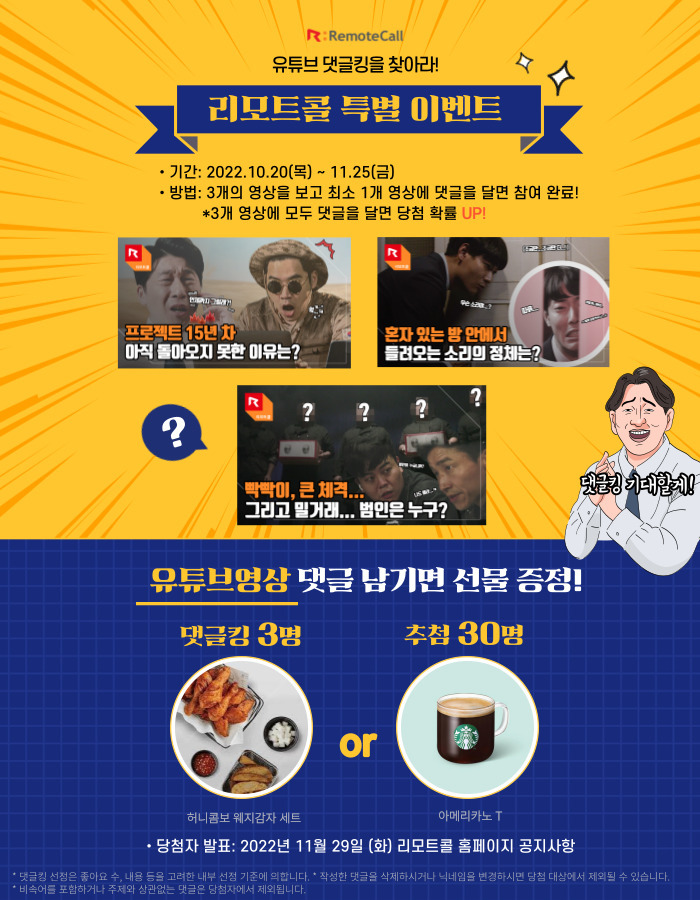 리모트콜 유튜브 댓글 EVENT! 댓글킹을 찾아라🎉