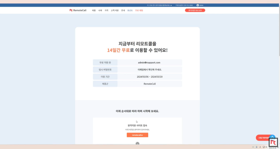 오늘은 리모트콜 원격지원을 무료로 체험해 볼 수 있는 방법을