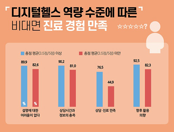 특히 개인의 디지털 헬스 역량이 디지털 기반 보건 의료서비스 이용에도 영향을 미치는 것으로 나타났는데요, 디지털 헬스케어를 안전하고 효과적으로 활용하려면 정부 차원에서 국민의 디지털 헬스 역량 강화를 지원해야 합니다.