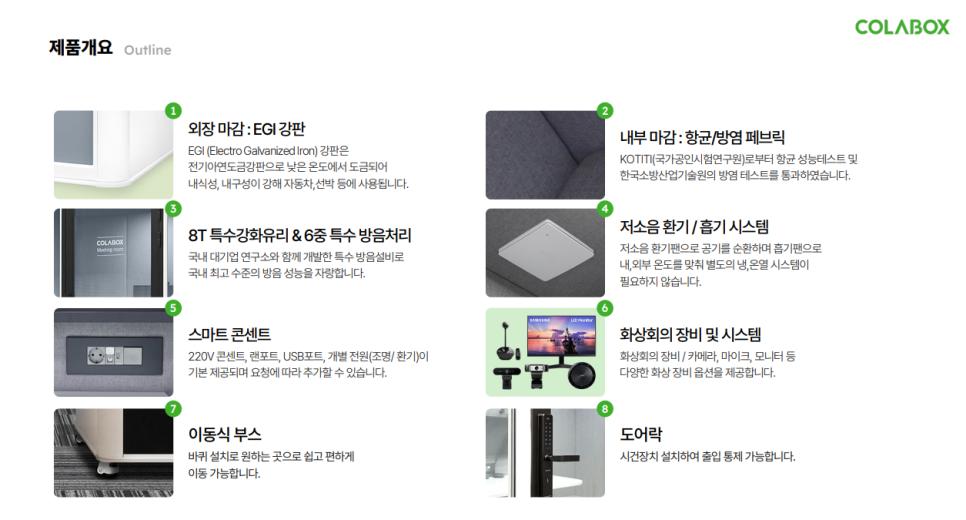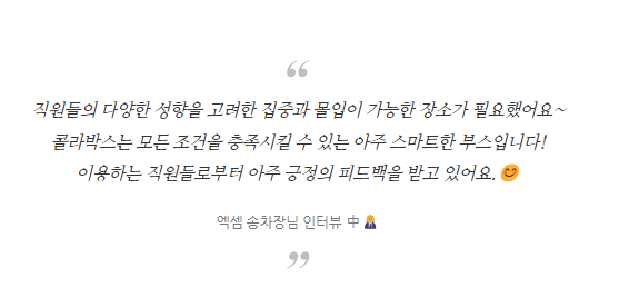 ✅기밀 유지 : 중요한 회의나 통화를 해야 할 때 기밀을 유지할 수 있습니다. 중요한 회의나 통화를 하러 멀리 사무실 밖으로 나가지 않아도 되므로 시간적인 효율성도 높여줍니다.