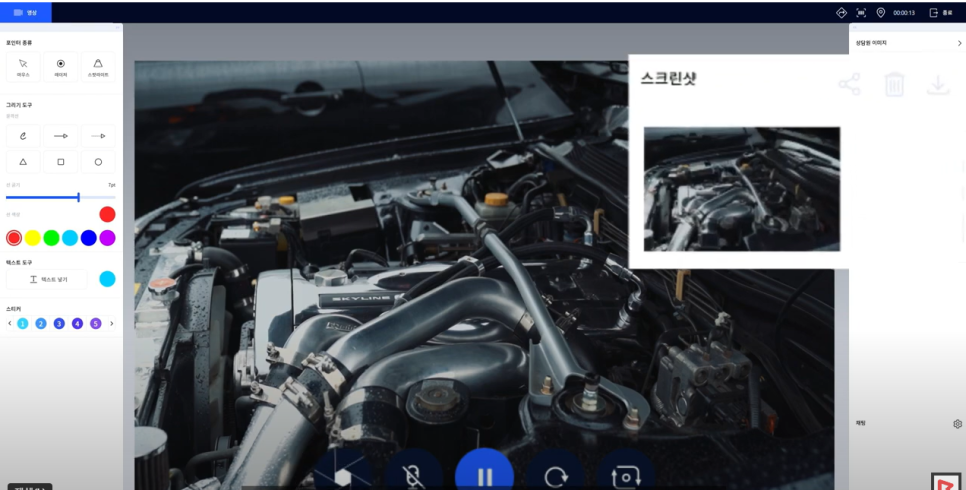 최대 720p의 영상 화질 조정이 가능하며, 공유 중인 화면을 스크린샷으로 기록할 수도 있습니다. 카메라와 마이크를 제어하여 더욱 원활하게 영상지원 및 상담을 할 수 있으며, 필요시 채팅 기능을 이용한 커뮤니케이션도 가능합니다.