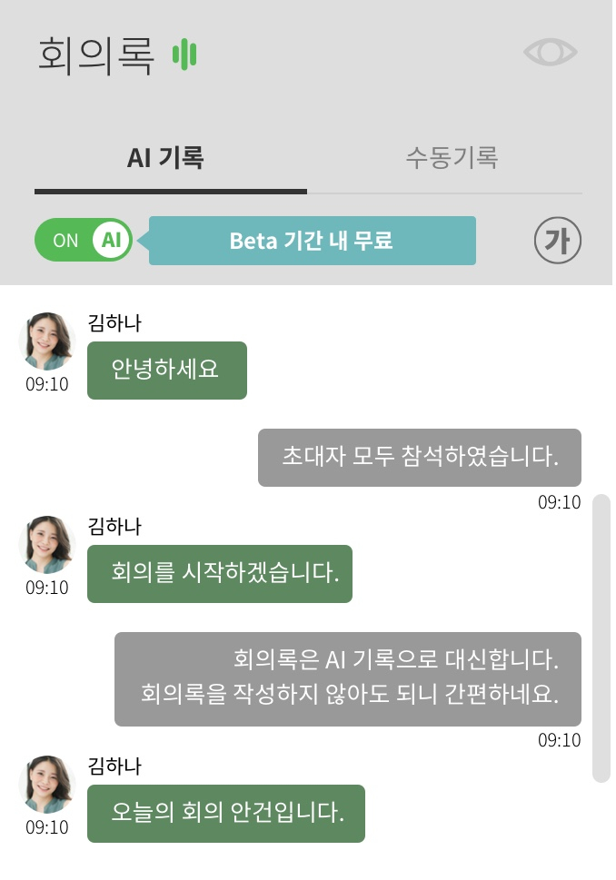 ‘리모트미팅’도 이와 유사한 기능인 ‘AI 자동회의록’을 지난해부터 제공하고 있다. AI 자동회의록은 화상회의 참여자들의 음성을 탐지해 자동으로 텍스트로 변환해 보여주는 방식이다. 동시에 발언할 경우 먼저 문장을 끝낸 사람의 발언을 중심으로 자동 기록된다. 따로 회의록 작성하는 사람을 지정할 필요가 없어 참석자 모두가 회의 내용에 집중할 수 있다.