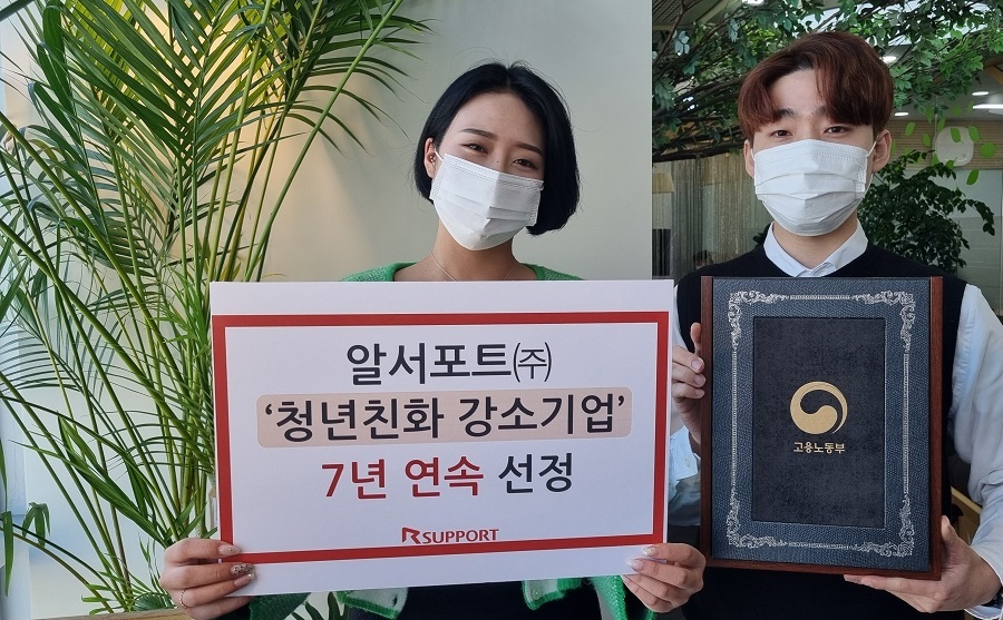 글로벌 비대면·원격 솔루션 전문기업 알서포트(대표 서형수)가 고용노동부가 주관하는 ‘청년친화 강소기업’에 7년 연속으로 선정됐다고 24일 발표했다.