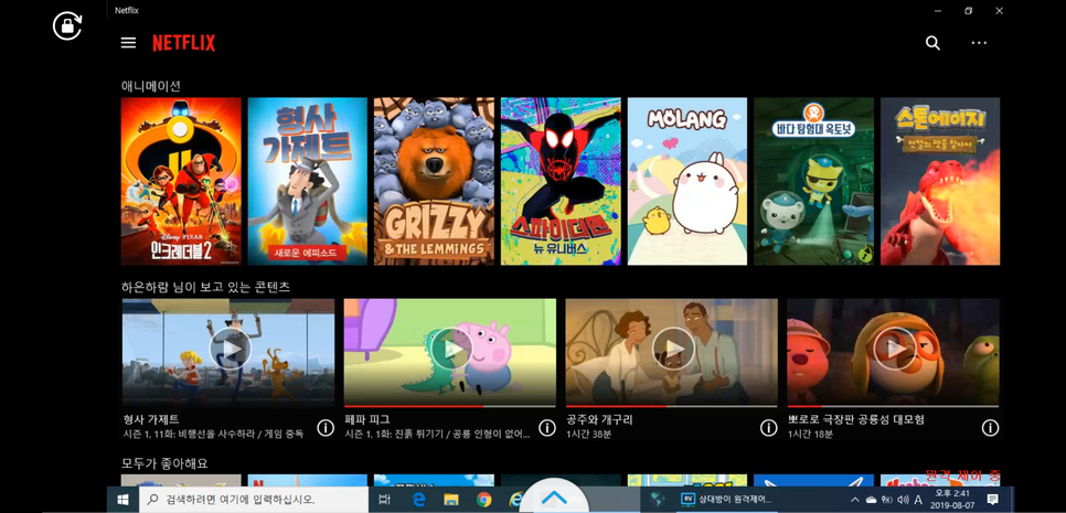 생각났습니다. 전에 애들이 할아버지 집에서 넷플릭스로 뭔가 봤던 일을요.