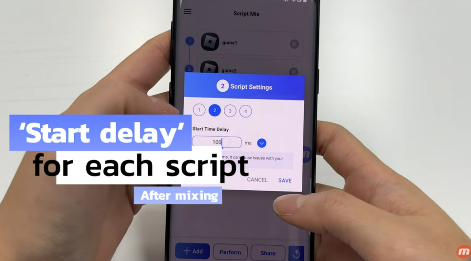 저장된 스크립트들을 믹스해서 사용할 수 있어요.