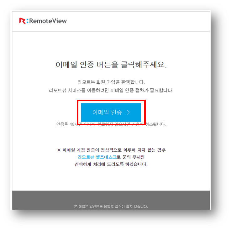 리모트뷰 무료 체험 기능은 이메일 인증 > 회원 가입 후 사용이 가능해요!