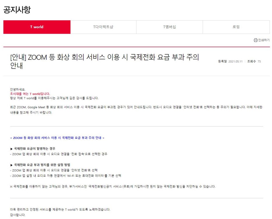 A씨와 같은 피해가 잇따르자 최근 국내 주요 이동통신사들은 홈페이지를 통해 유명 외산 화상회의 서비스 이용 시 해외 통화료가 부과될 수 있다는 안내를 공지했습니다.