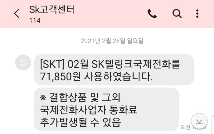 국제전화 이용 요금 71,850원이 찍혀온 것이 아닌가?!