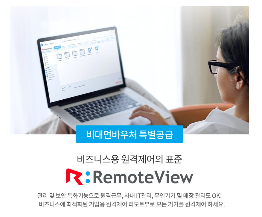 알서포트도 2020년부터 4년 연속으로 비대면 바우처 사업 공급기업으로 선정됐는데요~ 이번 사업에 재택근무(협업 툴) 부문 공급기업으로 선정된 알서포트는 원격제어 및 재택근무 서비스 ‘리모트뷰(RemoteView)’ , 원격지원 서비스 ‘리모트콜(RemoteCall)’ 등 2개 제품을 제공합니다.