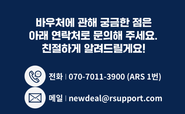 재택근무 및 원격제어 서비스 리모트뷰와 원격지원 서비스 리모트콜 도입을 희망하는 수요기업은 ‘K-비대면 서비스 바우처 플랫폼’ 웹사이트를 통해 합리적인 가격으로 제품을 도입할 수 있습니다!😉