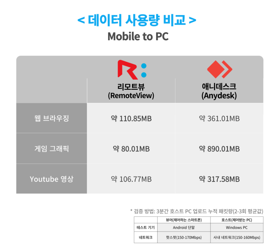 '리모트뷰'와 '애니데스크'의 데이터 사용량입니다. 👇👇
