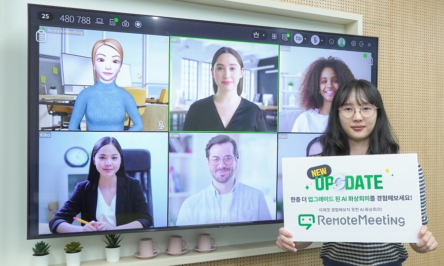 ‘리모트미팅’은 생성형 AI 기반 회의록 요약 기능 외에도 다양한 AI 기술을 활용한 기능을 제공한다. ▷주변소음 제거 ▷발언자 자동탐지 ▷가상배경 화면 ▷페이스포커스(인물 자동탐지 및 위치조정) 등을 비롯해 화상회의 비서 ‘아루(ARU, AI-based Response Utility)’를 이용한 가상 리허설 기능 등이 대표적이다.