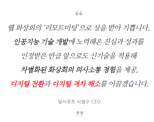 <기사 원문> 알서포트, AI로 글로벌 비대면 원격근무 공략 앞장[AI코리아대상]