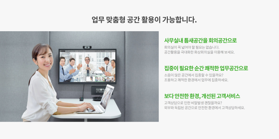 고객 상담, 온라인 면접, 업무 집중 공간 등